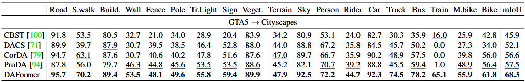 | DAFormer | MiT-B5 | Transformer | 68.3 |